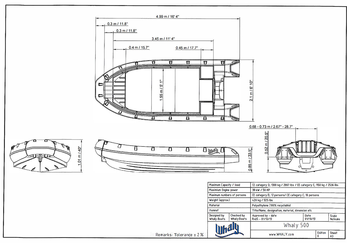 Whaly 500 je višenamjenska otvorena brodica izrađena od visokokvalitetne plastike (polietilena). Ovaj model je jedinstven zbog svog velikog unutrašnjeg prostora i svestranosti! Idealan je za rekreativnu upotrebu, ali također izuzetno pogodan za profesionalne namjene. Bilo da tražite stabilnu radnu brodicu, prateći čamac za školu jedrenja, Whaly brod za spasilačke operacije ili izdržljiv Whaly za poslovanje sa iznajmljivanjem brodova, Whaly dizajn, koji naglašava snagu i stabilnost, nudi brojne opcije.